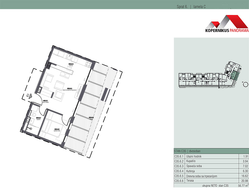 2,0 stan od 60,16m2 dostupan samo u C lameli na IV i V spratu.